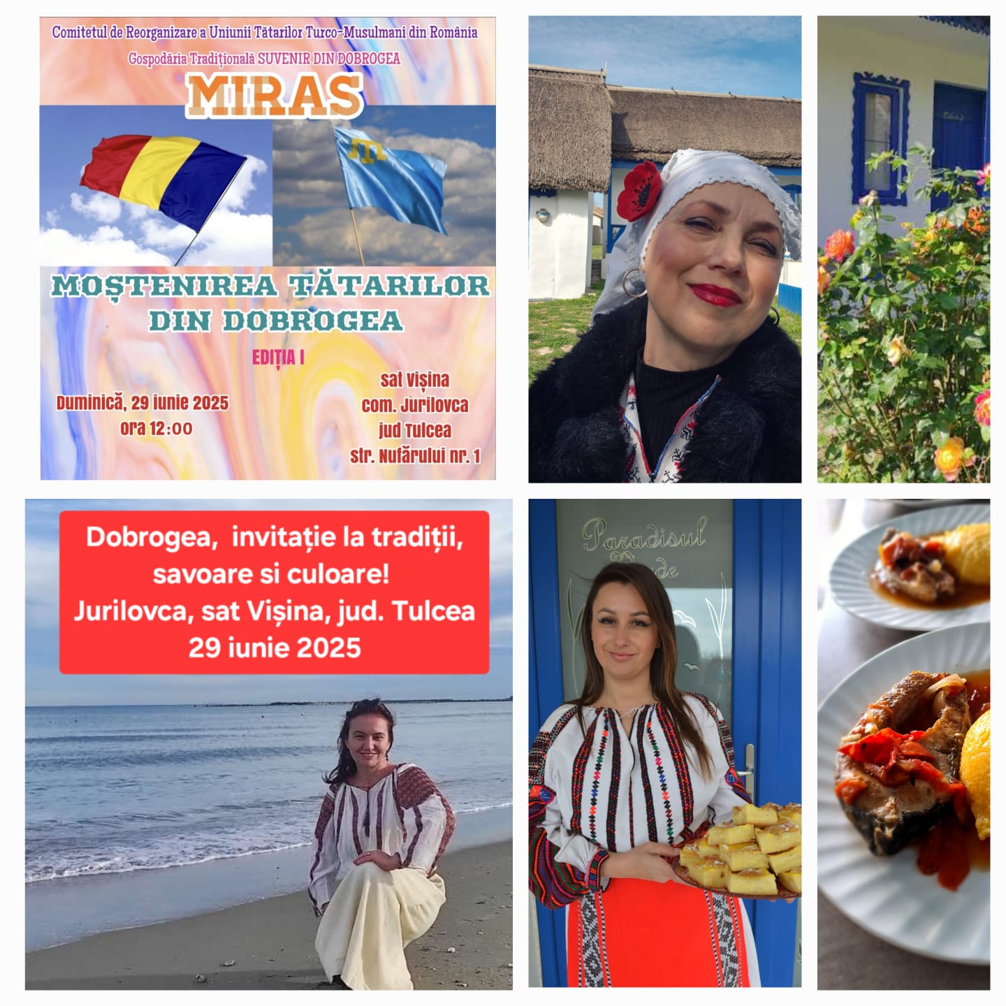 Duminică, 29 iunie de la ora 12.00 ajungem în satul Vișina, la Gospodăria Traditională „Suvenir din Dobrogea” pentru evenimentul organizat aici împreună cu Comitetul de Reorganizare a Uniunii Tătarilor Turco-Musulmani din România și anume ” MIRAS- Moștenirea tătarilor din Dobrogea” . Suntem invitați să aflăm despre poveștile moștenirii tătarilor din Dobrogea, pŕintr-un eveniment cultural- tradițional în care se vor împleti arta plastică, meșteșugul tradițional, o prezentare a zestrei moștenite din generație în generație, muzica tătărască dar și mică gastronomie. Se va vizita casa muzeu, micul parc cu animale din gospodărie, se vor viziona atelierele de meșteșug și gastronomie tătărăști.