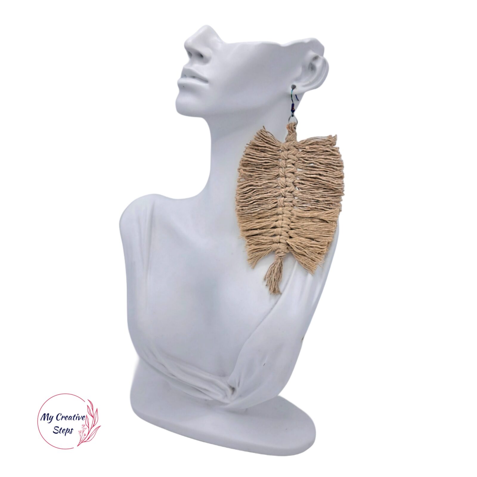 Cercei handmade realizați prin tehnica înnodării firelor. Dimensiune 8/12 cm.