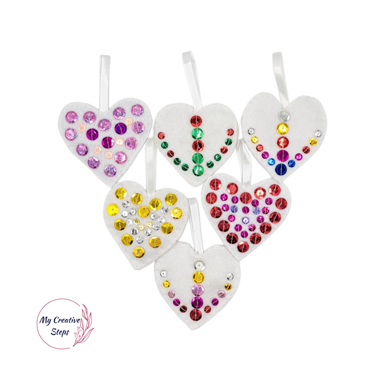 Decorațiuni handmade de Crăciun din fetru și mărgele. Șase buc în pachet, dimensiuni aprox. 7/6 cm.