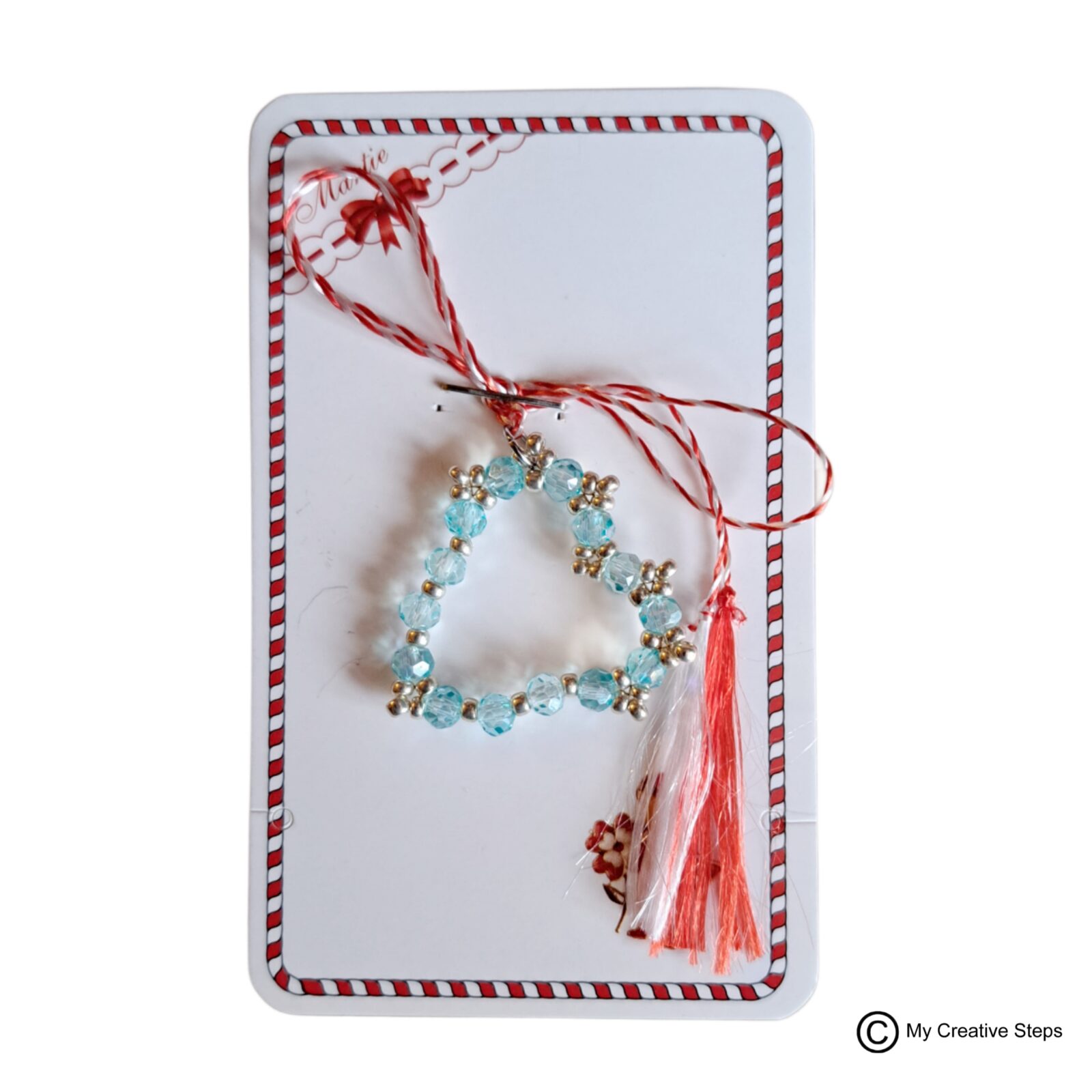 Mărțișor pandantiv handmade inimioară din din cristale, mărgeluțe japoneze Miyuki și inox. Dimensiuni aprox. 2/2.5 cm.