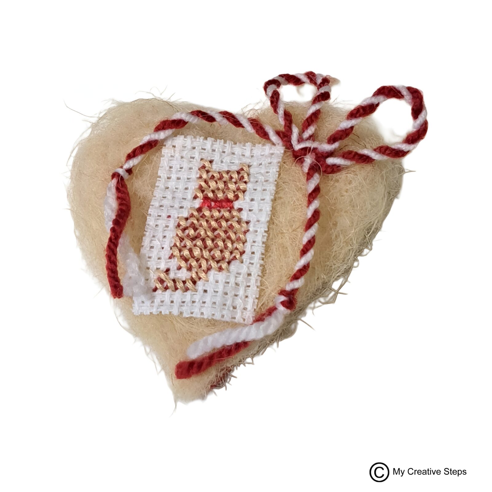 Mărțișor/Suvenir artizanal pisică, cusut manual. Dimensiuni 6.5/6 cm.