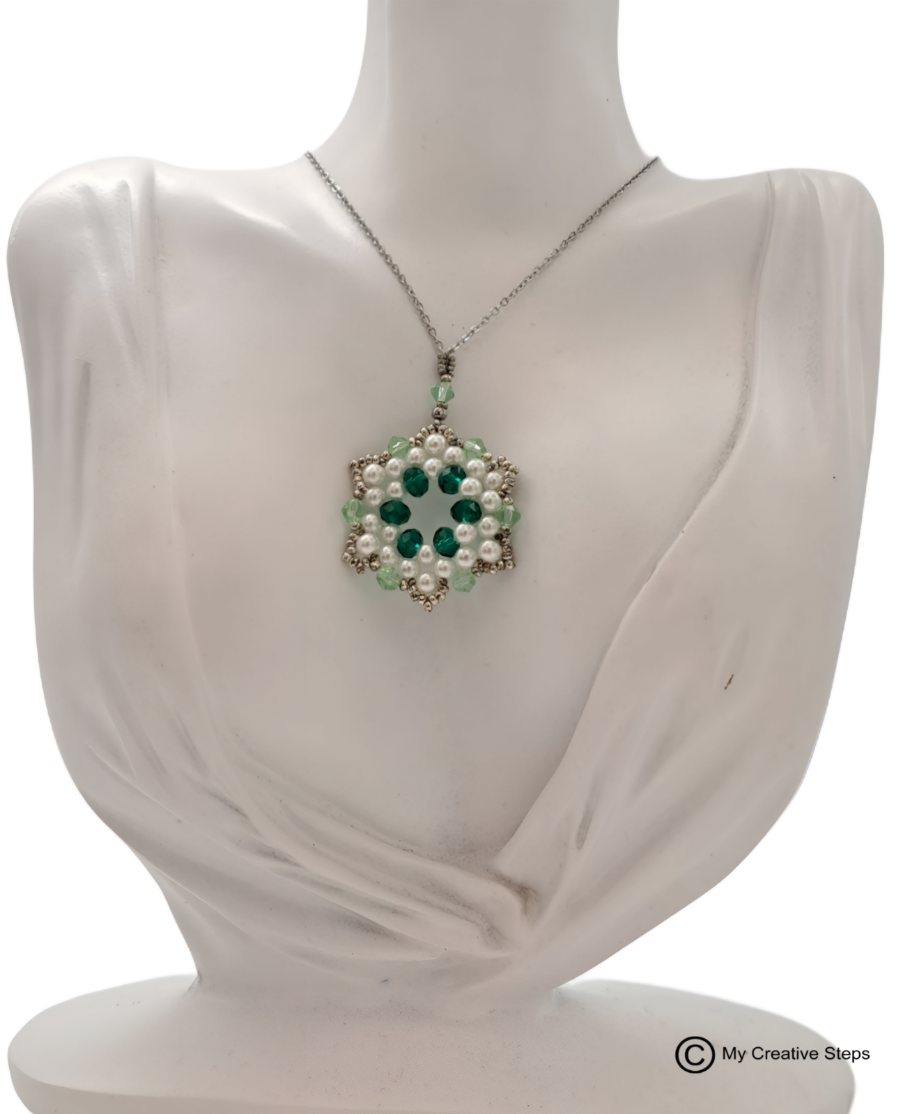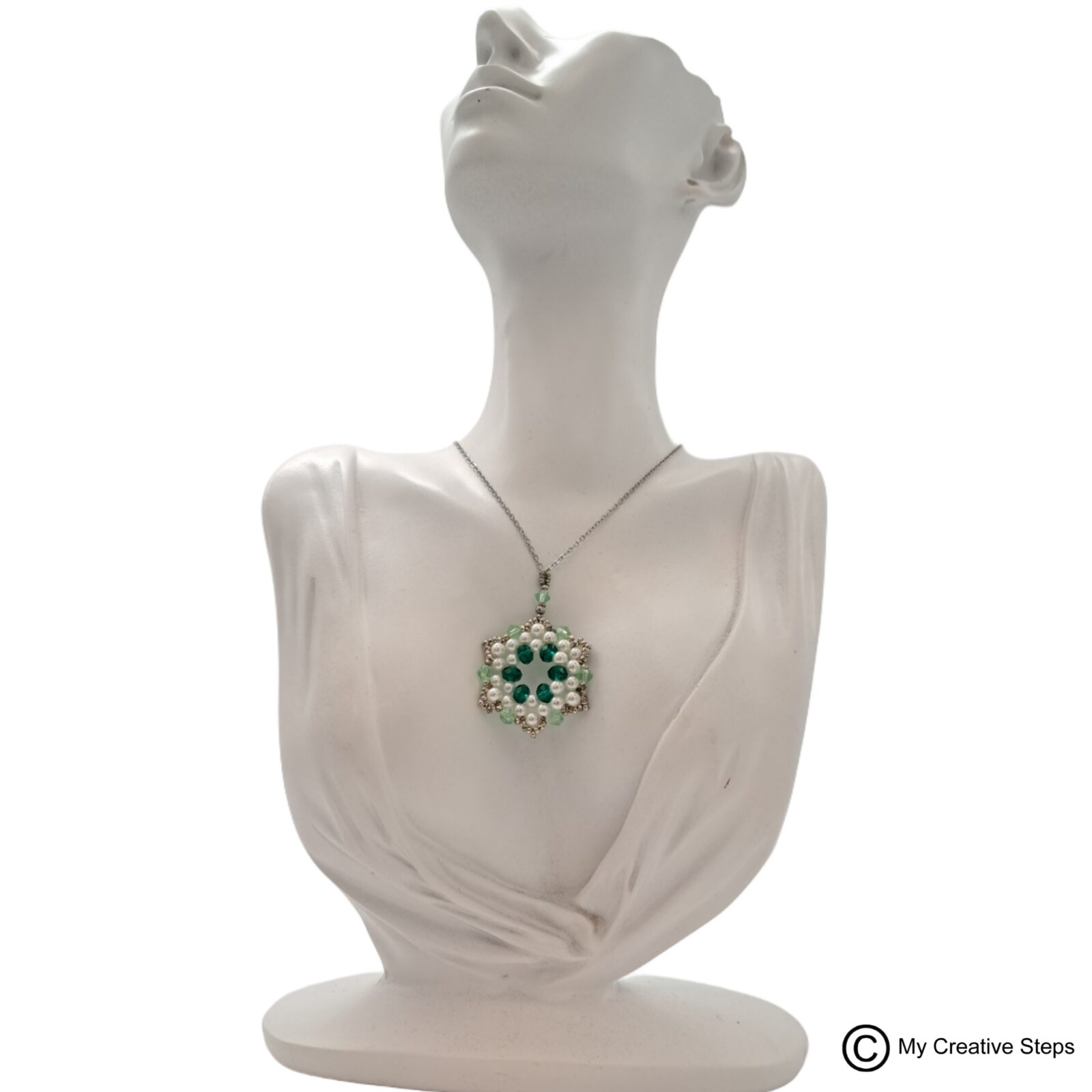 Pandantiv handmade cu lanț din INOX. Lungime aprox. 5 cm, diametru aprox. 3.5 cm.
