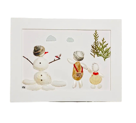 Tablou „Poveste de iarnă în scoici și culori” – dimensiuni 21 x 16 cm Poveste din scoici, bucățele de sticlă și plante uscate.